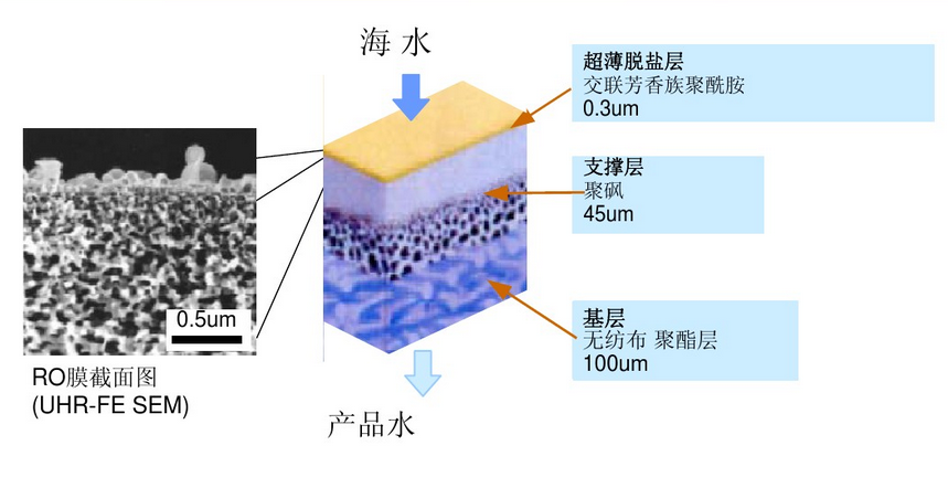反渗透海水淡化技术发展很快,工程造价和运行成本持续降低,主要发展趋势为降低反渗透膜的操作压力,提高反渗透系统回收率,廉价高效预处理技术,增强系统抗污染能力等。